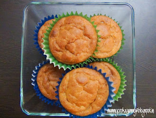 Eggless banana cupcakes are perfect option for me when I am left with over ripe bananas. These cupcakes make a wonderful breakfast or evening snacks with a glass of milk . Even these cupcakes can be packed in kids lunch box as well.